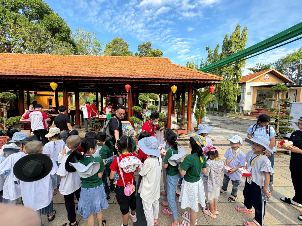 Ngoài ra, chương trình còn tổ chức bữa trưa thân mật dành cho các em nhỏ. Bữa ăn được chuẩn bị chu đáo, đầy đủ dinh dưỡng, mang đến cho các em cảm giác ấm áp như ở nhà. Trong không khí vui tươi, các em cùng nhau thưởng thức những món ăn ngon, cười đùa rộn rã, tạo nên những khoảnh khắc đáng nhớ và đầy yêu thương sau buổi sáng tham gia hoạt động tại Công viên Văn hóa Đầm Sen. Bữa ăn trưa của các em sẽ có: trứng chiên, cánh gà chiên nước mắm, thịt ba rọi kho trứng cút, chả cá sốt cà, su xào, canh cải ngọt thịt bằm, cơm trắng, tráng miệng, trà đá cùng với khăn lạnh.