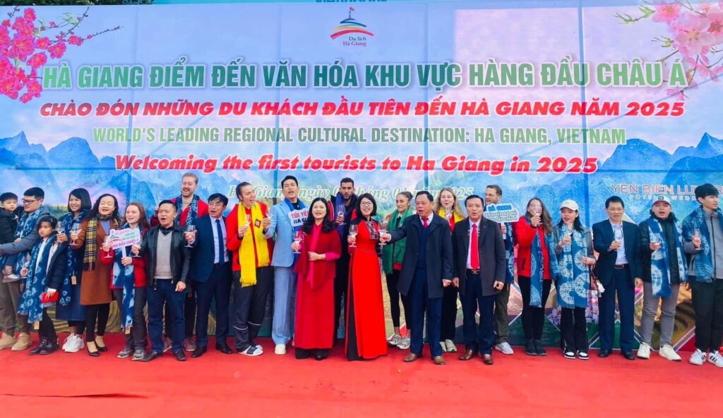 Đoàn khách du lịch đầu tiên đến Hà Giang đầu năm 2025 là các ca sĩ, nghệ sĩ, tiktoker, youtuber nổi tiếng và du khách đến từ nhiều tỉnh, thành trên cả nước, nhiều quốc gia khác nhau, tất cả đều chung một tình yêu đặc biệt dành cho vùng đất nơi địa đầu Tổ quốc.