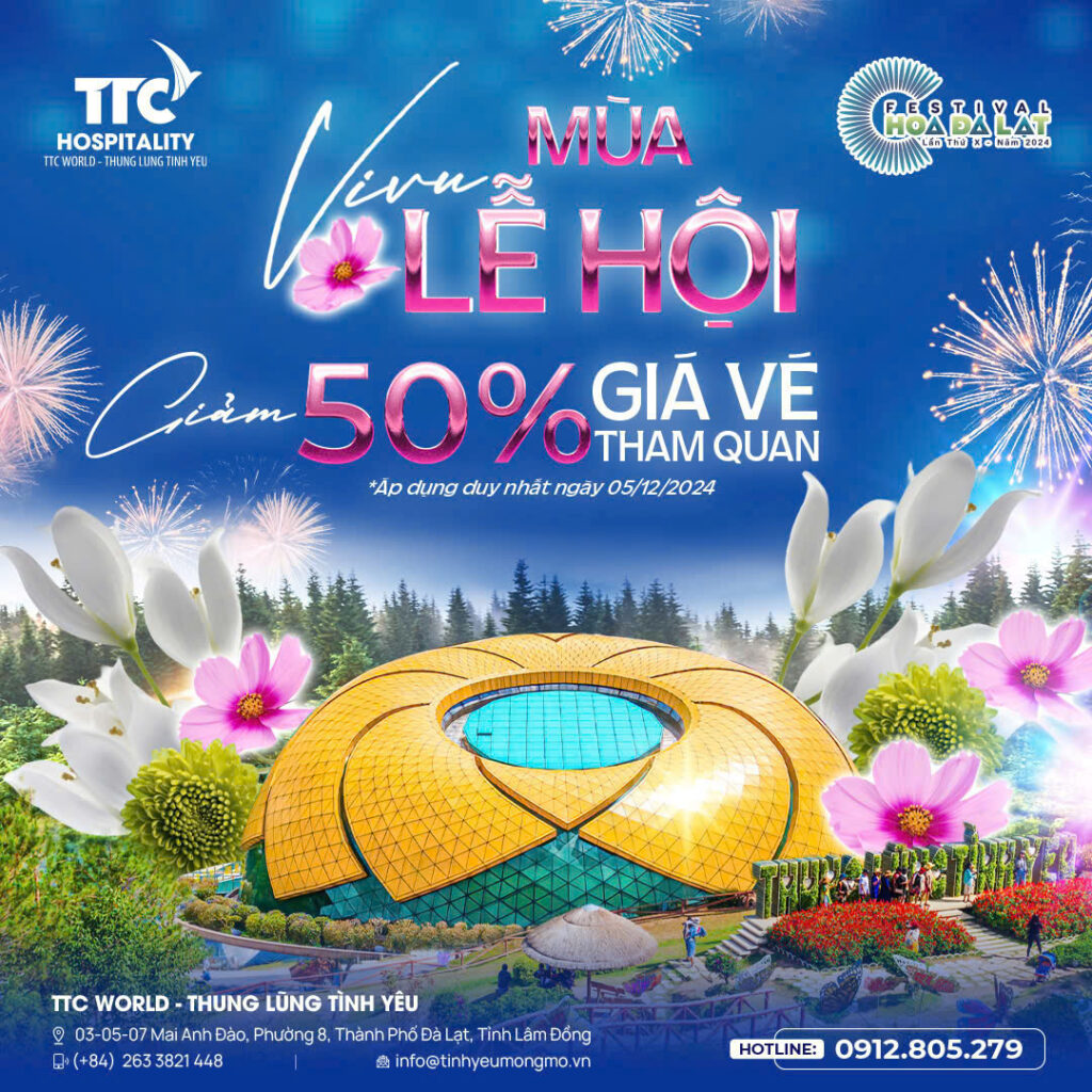 Ông Đinh Tuấn Anh – Giám đốc TTC World – Thung Lũng Tình Yêu chia sẻ, việc KDL đưa ra chương trình giảm giá vé tham quan cho du khách trong ngày khai mạc Festival Hoa lần thứ X – 2024 nhằm thể hiện cam kết của mình trong việc “Vì cộng đồng phát triển địa phương”. Đây là một hành động thiết thực nhằm khuyến khích du khách đến tham quan và trải nghiệm vẻ đẹp của thành phố ngàn hoa trong dịp lễ hội đặc biệt này.